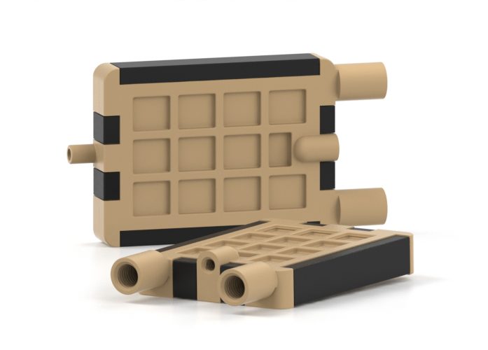 The construction of the flat film degassing chamber is completely metal free, yet compatible with all organic solvents including hexane and hexafluoro isopropanol (HFIP). The wetted materials are Teflon™ AF, PEEK, and carbon. It has an internal volume of 500 µL and is equipped 1/4-28 UNF threaded flat-bottom ports.