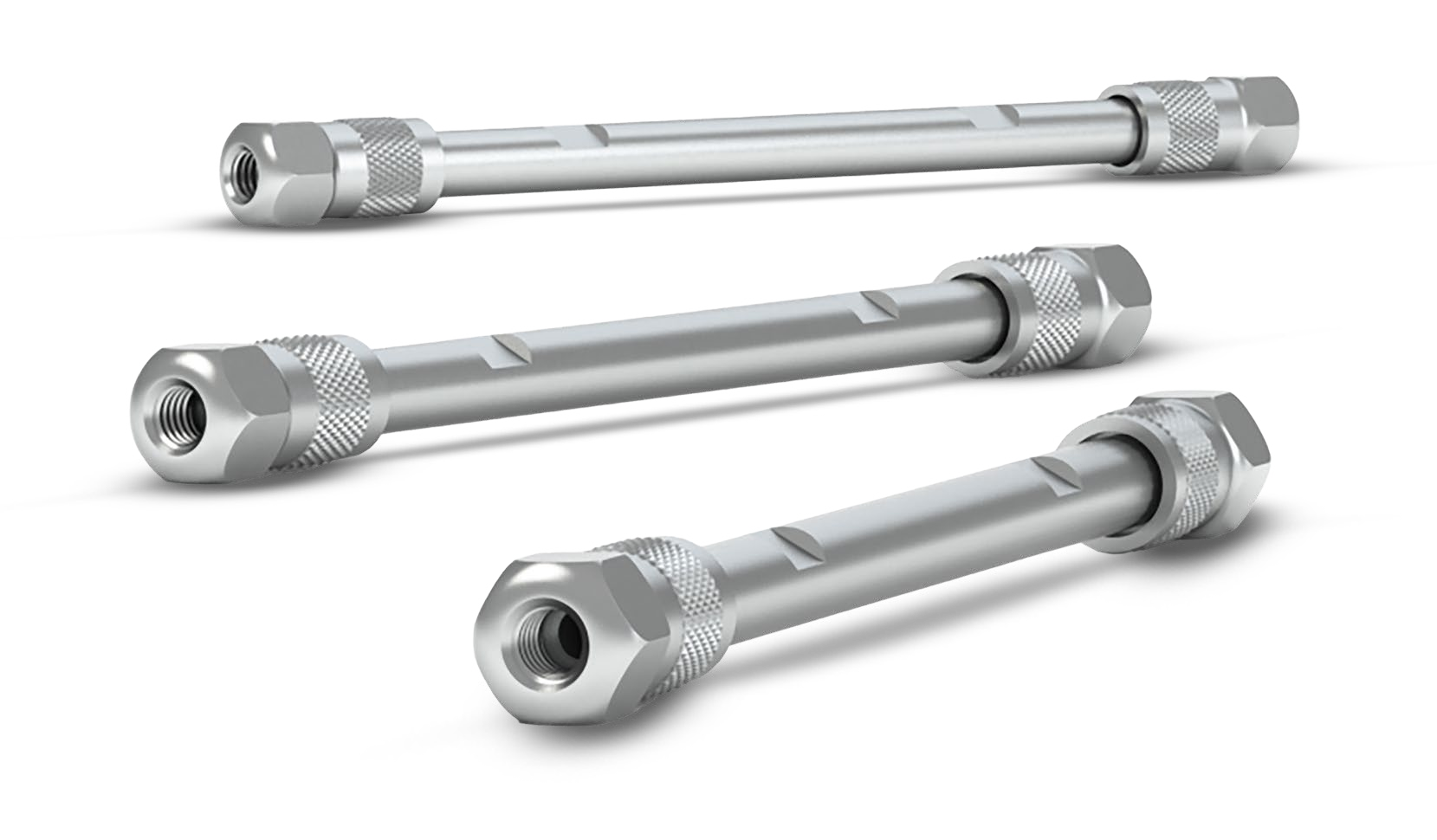 Modular hardware guarantees a high-pressure seal between the tubing and end fitting, as well as a proper seating of the frit. The frit is contained in a cap that slides over the column, forming a leak-free and gap-free seal. All stainless-steel modular columns use our exclusive Isobore™ internal surface finish. Modular column hardware systems include the following components: one 316 stainless steel column body, two one-piece end fittings and two frit caps containing 316 stainless steel frits in a PEEK cap. In addition, Modular systems are available in custom IDs and lengths — many sizes are available. Isobore-grade surface finish reduces drag at the column wall and improves column efficiency and performance by providing an extremely smooth, flat, and clean surface; it also features a surface finish with typical values around 8 µin.