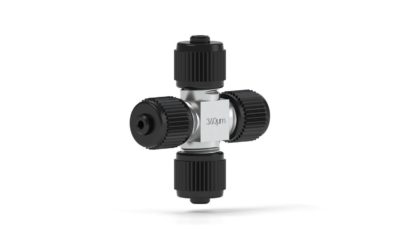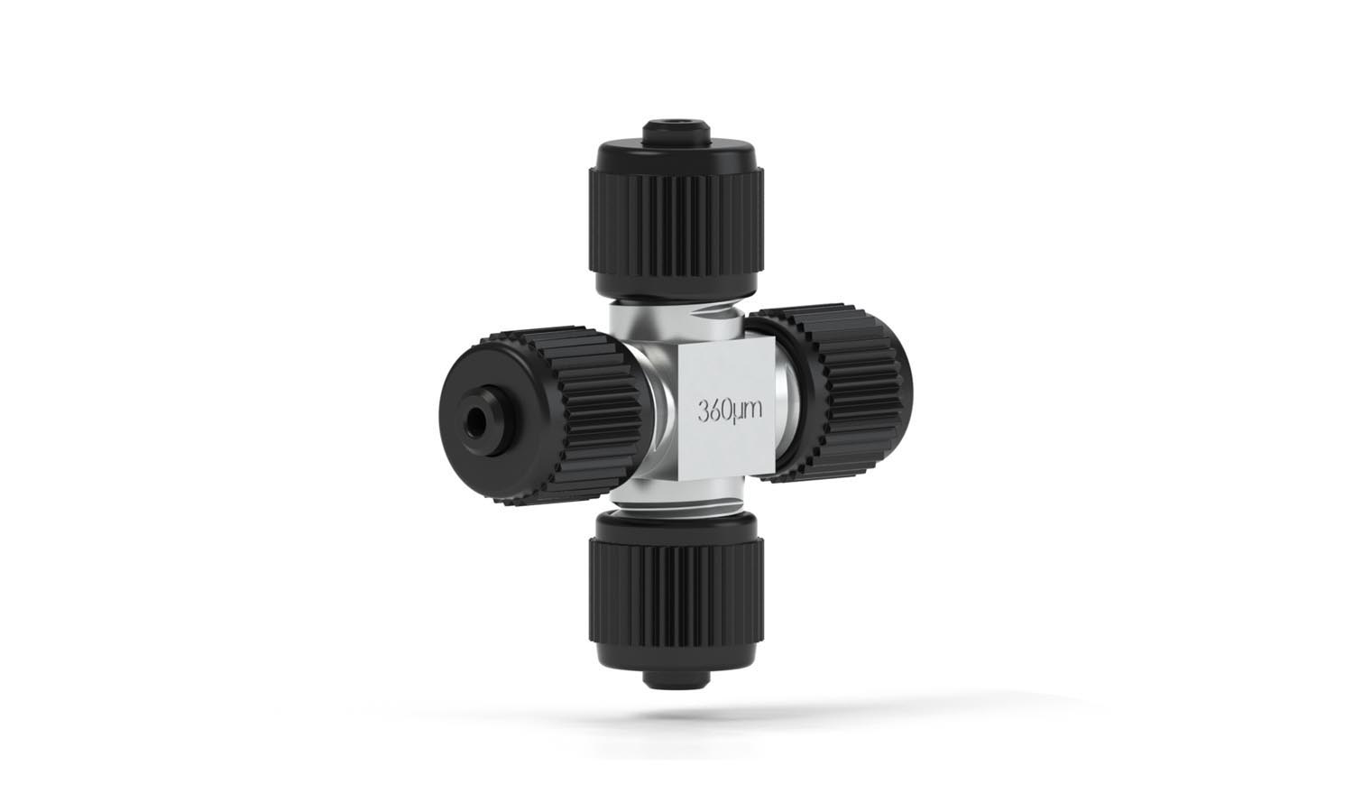 Our VHP MicroCross Assembly’s unique design creates a direct connection for tubing; no sleeves required. It is manufactured from durable stainless steel and features a small thru-hole and very low internal volume. Stainless steel delivers excellent chemical compatibility and conductivity making it an ideal choice when electrical applications are in use. It is for 360µm OD tubing and has a thread of 5/16-24 Coned. It comes with (4) PK-152 and (4)P-416BLK Fittings. Brochure