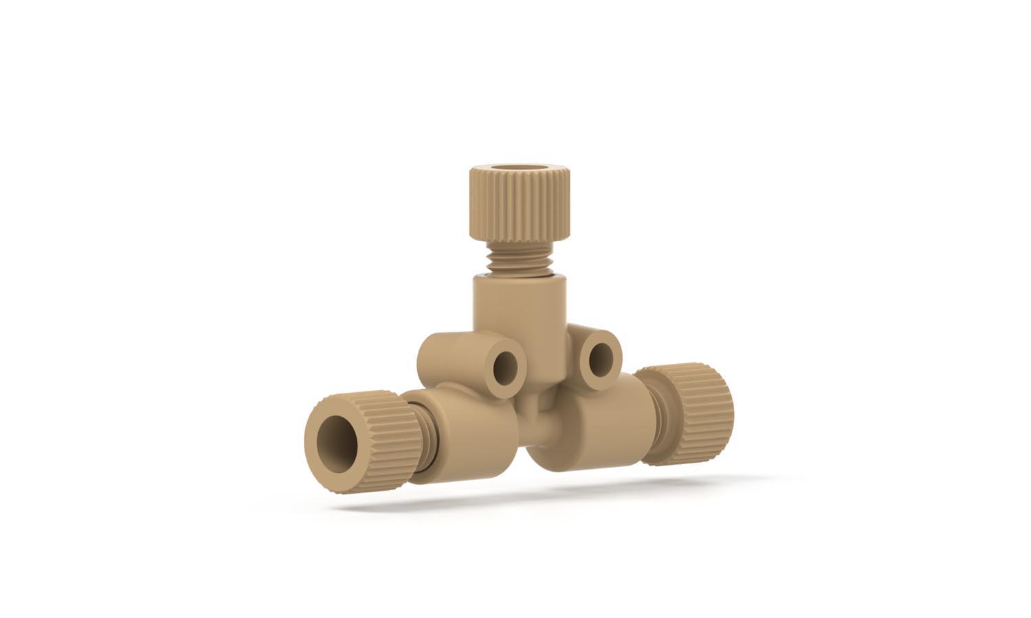 Our PEEK Low Pressure Tee Assembly is strong and durable handling a pressure rating 1000 psi (69 bar). It has excellent chemical resistance to commonly used solvents. Our assembly comes equipped with convenient mounting holes. This assembly includes (3) P-235 Nuts. Brochure