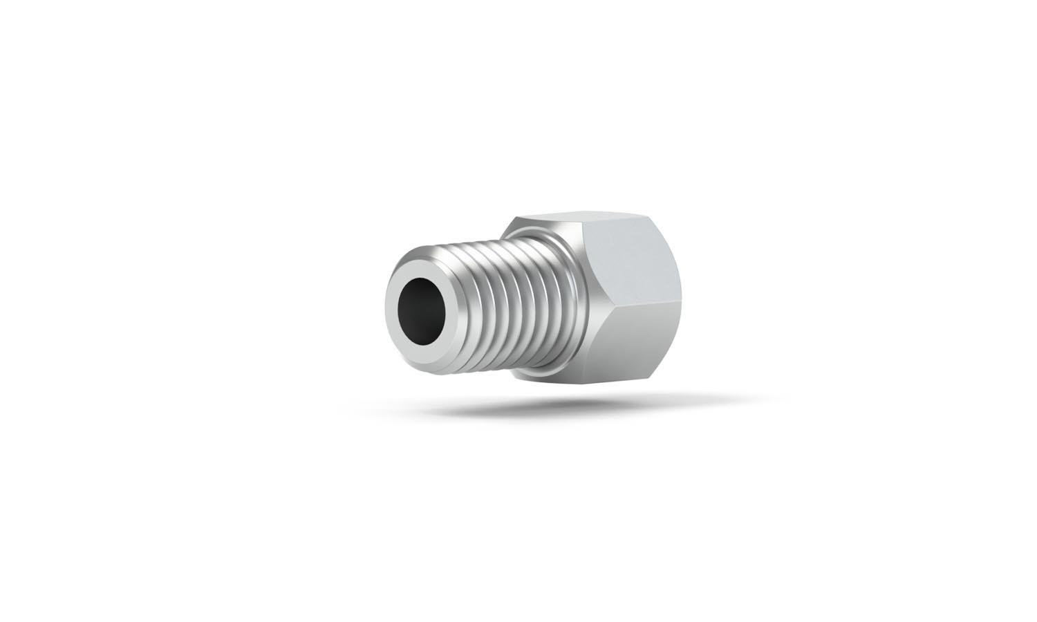 Our Stainless Steel Male Nut delivers strength and reliability. It can withstand pressures of up to 20,000psi when wrench tightened. Our nut has a 1/4-28 coned thread port configuration and is for 1/8″ OD tubing.