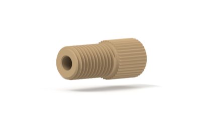 Our Super Flangeless Nut is excellent for those connections that need to be broken frequently and tubing assemblies because they swage onto the tubing. It has a standard knurl head style and is for 1/8″OD tubing. It has a 5/16-24 Flat-Bottom port and comes in natural color. Brochure