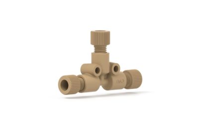 Our PEEK Low Pressure Tee Assembly is strong and durable handling a pressure rating 500 psi . It has excellent chemical resistance to commonly used solvents. Our assembly comes equipped with conveniently placed mounting holes. This assembly comes complete with (3) P-335 Nuts. Brochure