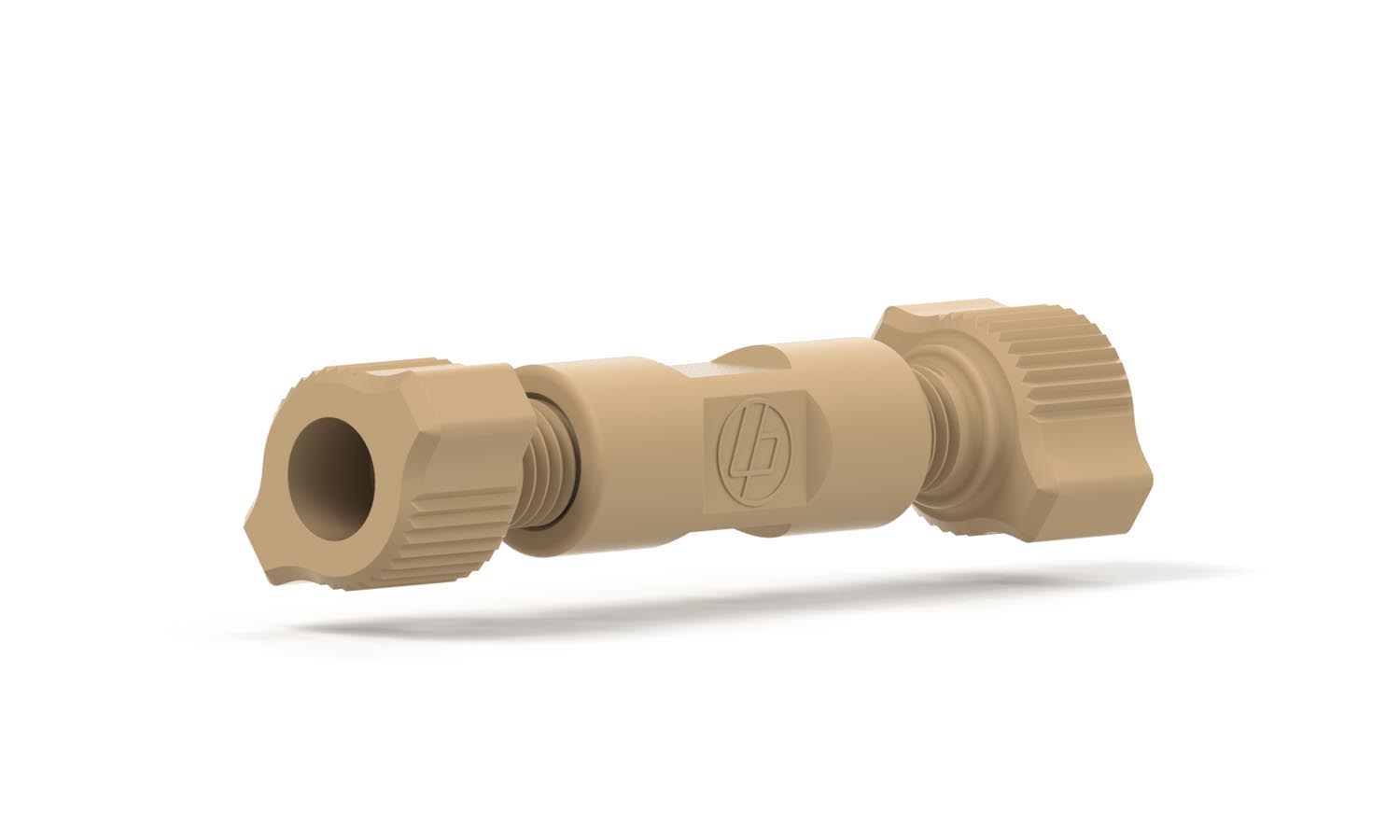 Our PEEK High Pressure Union Assembly is specifically designed to bring two pieces of tubing together. It is also ideal for joining a soft, flexible tube to a rigid tube or to connect a syringe to a piece of tubing. It has a .050 thru hole and a 5000 psi (345 bar) pressure rating. Brochure
