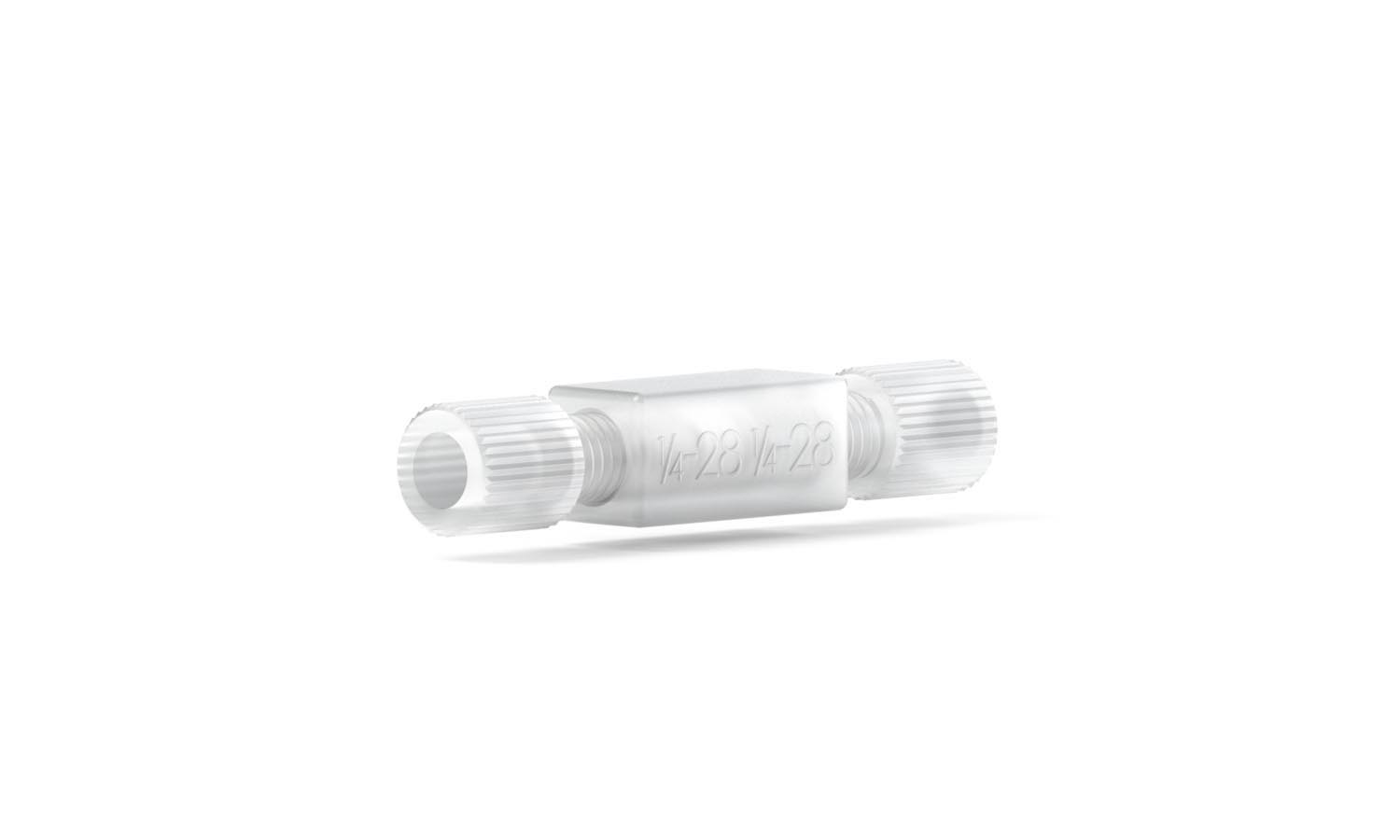 Our low pressure Standard Union efficiently connects tubing in low pressure regions of a system where a dependable connection is imperative. Our union provides true ZDV which allows tubing join together without interrupting the fluidic path. Made from Tefzel (ETFE) it delivers excellent solvent resistance. It is designed for 1/16″OD Tubing, has a 1/4-28 Flat Bottom thread port style and comes in natural color. It includes (2) P-200N ferrules and (2) P-245 Flangeless Fittings. Brochure