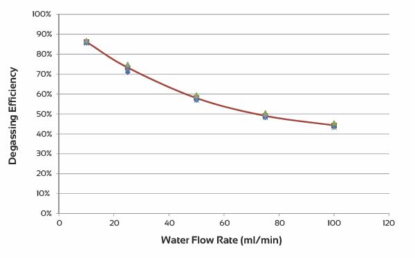 Efficiency of oxygen removal from water at different flow rates using DEGASi® Prep+ degasser